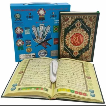 Elevate your Quranic journey with this complete and elegant Digital Quran Reading Pen Set. This premium package includes a beautifully printed, big-sized Quran with crisp, easy-to-read Arabic script, a sophisticated digital reading pen in classic white, all presented in a luxurious gift box, making it as perfect for gifting as it is for personal devotion.